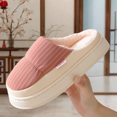 细细条 情侣棉拖鞋秋冬季男女士时尚家居保暖韩版蝴蝶结毛毛鞋ins