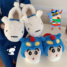 细细条 可爱蜡笔小新小白毛绒家居鞋冬季舒适保暖情侣棉拖鞋男女