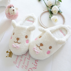 冬季新款韩版卡通小熊棉拖鞋室内外家居防滑保暖情侣毛绒月子棉拖