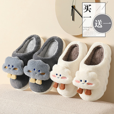 买一送一棉拖鞋女冬季防滑保暖2023新款室内家居棉拖情侣拖鞋男士
