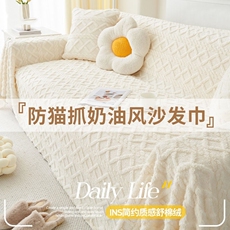 兔兔绒秋冬沙发盖布巾冬季毛绒防滑沙发套罩2026新款防猫抓坐垫毯
