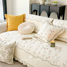 蔓越家 小清新全棉水洗棉沙发垫防滑纯棉沙发套罩靠背巾四季通用