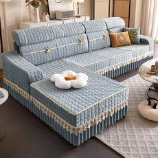 简约风双层裙边款沙发套罩四季通用高弹力全包沙发笠防滑坐垫盖布
