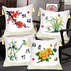 梅兰竹菊十字绣抱枕一对2019新款线绣手工客厅卧室枕头套自己绣