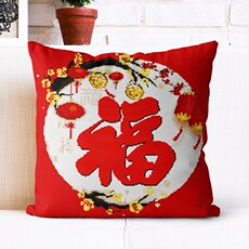 新款印花十字绣抱枕中国风富贵福幸福字客厅沙发汽车坐垫靠垫套芯