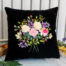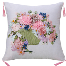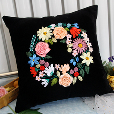 丝带绣抱枕新款立体m绣十字绣套件自绣花卉手工刺绣diy材料包靠垫