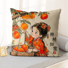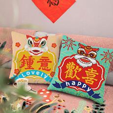 国潮醒狮抱枕中式喜庆沙发靠垫创意中国风十字绣刺绣结婚靠枕新款