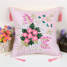 彩带秀丝带绣十字绣新款抱枕套立体绣手工刺绣自绣diy材料包靠垫