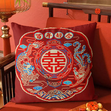 厂家直销十字绣抱枕国潮喜庆欢喜钟意婚庆抱枕套