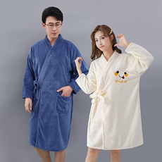 珊瑚绒睡袍男士冬季加绒保暖情侣睡衣法兰绒浴袍女中长中厚款浴衣