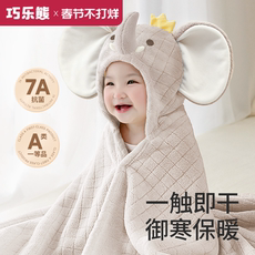 儿童浴巾带帽斗篷浴袍宝宝新生婴儿浴巾冬款珊瑚绒洗澡大毛巾包裹