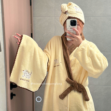 可穿长袖浴袍吸水柔软不掉毛学生休闲服洗澡大浴巾家用加厚大浴裙