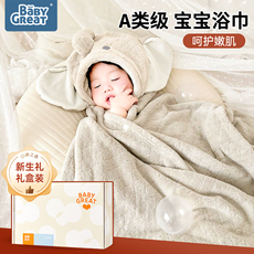 全棉时代秋冬婴儿纯棉浴巾宝宝新生儿童纱布浴巾超软带帽斗篷浴袍
