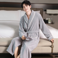 睡袍男士冬季珊瑚绒加厚加绒睡衣男款秋冬款法兰绒浴袍大码家居服