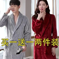情侣浴袍买一送一睡袍男秋冬双面绒保暖珊瑚绒中长小个子浴衣女