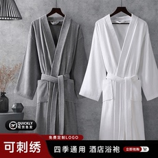 四季新款七分袖华夫格酒店纯棉浴袍吸水速干洗澡穿的全棉浴衣睡袍
