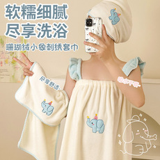 浴袍可穿式浴巾加厚吸水速干浴裙女家居服睡袍珊瑚绒家用绑带裹巾