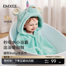 嫚熙婴儿浴巾带帽斗篷珊瑚绒浴袍吸水新生儿可穿式包裹巾春夏保暖