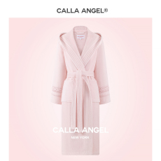 CallaAngel纯棉连帽浴袍女毛巾料长绒棉柔软吸水厚款粉色浴衣新款