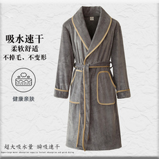 冬款德绒长袖加绒加厚中长款睡袍男士宽松大码懒人家居服保暖浴袍