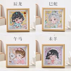 可爱云朵十二生肖钻石画2025新款儿童房萌宠十字绣水钻砖石画带框