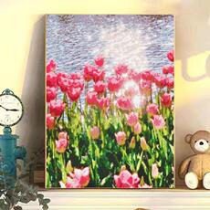 郁金香钻石贴画满钻diy手工生日礼物送闺蜜大尺寸带框风景贴钻绣