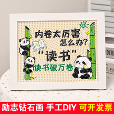 熊猫儿童钻石贴画励志手工diy材料包小学生治愈文字幼儿园砖石画