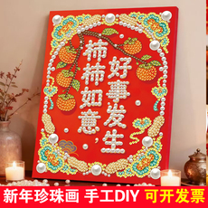 柿柿如意珍珠画手工diy材料包财神爷珍珠画新年舞狮马年钻石贴画