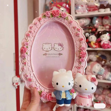 外贸孤品 三丽鸥KT猫Kitty 树脂玫瑰相框结婚喜庆礼物工艺品摆件