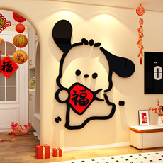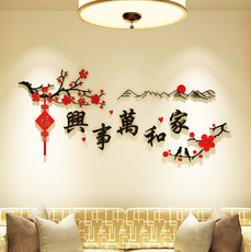 2026马新年装饰福字墙面贴春节中国红玄关挂画客厅电视背景3d立体
