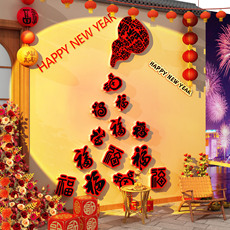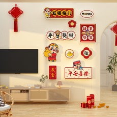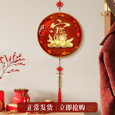 中式圆形装饰画自粘客厅红色福字五福临门家和玄关走廊过道美化