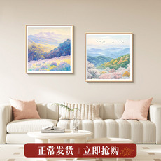 花海奶油风沙发背景墙装饰画新款樱花风景治愈系餐厅卧室组合壁画