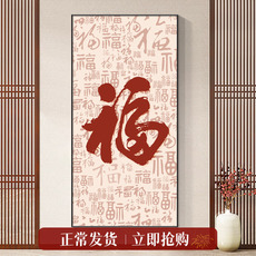 百福图新中式玄关装饰画现代简约走廊过道挂画竖版入户正对门壁画