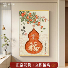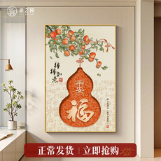 葫芦福字入户玄关装饰画窄长条竖版壁画柿柿如意走廊过道尽头挂画