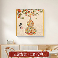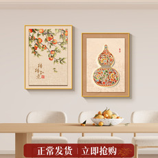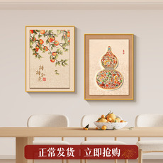 葫芦新中式饭厅餐桌挂画柿柿如意高级感餐厅装饰画寓意好客厅壁画