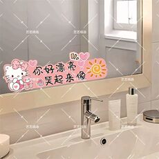KT猫浴室镜子贴纸自粘卫生间遮挡神器装饰小图案高级感玻璃