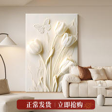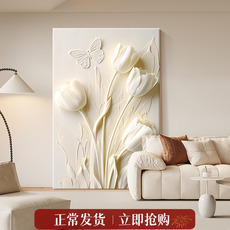 奶油风落地装饰画郁金香花卉肌理客厅沙发背景墙挂画走廊过道壁画
