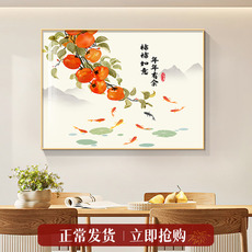 马上有钱客厅装饰画2026新款福字沙发背景墙挂画柿柿如意组合壁画