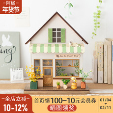 阿楹 木屋儿童房微缩场景小摆件灯道具玄关电视柜装饰可爱展示架