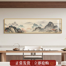 福禄金山客厅装饰画新中式山水沙发背景墙挂画现代高级感横幅壁画