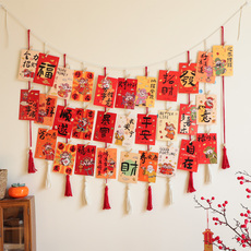 新年红色喜庆照片绳编流苏挂毯书法文字国潮卡片展示墙面悬挂壁饰