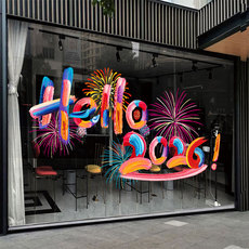 2026新年马年店铺玻璃贴过年装饰橱窗贴纸场景布置装扮春节门贴