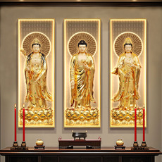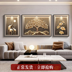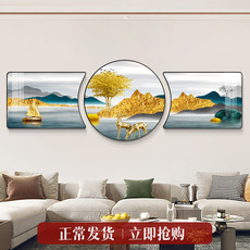背靠金山客厅装饰画福禄麋鹿发财树沙发背景墙山水风景壁画三联画