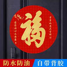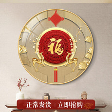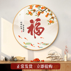 天下福康熙福字贴画客厅玄关圆形装饰画百福图荷花心经自粘画