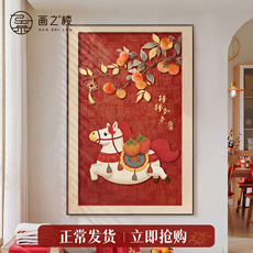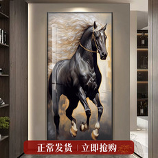 马上有钱玄关装饰画办公室高级感竖版挂画马到成功走廊尽头墙壁画