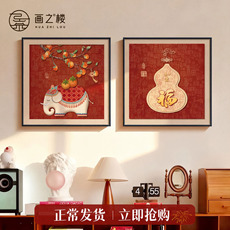 百福图正方形装饰画新中式福字餐厅客厅玄关挂画寓意好背景墙壁画