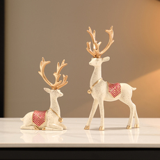 客厅创意陶瓷一家三口摆件一鹿有你家居装饰品结婚礼物送新人一对