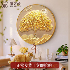 现代轻奢发财树玄关装饰画金色招财树走廊过道挂画聚财入户门壁画