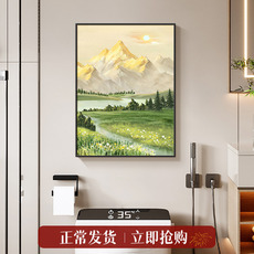 日照金山高级感卫生间防水挂画免打孔酒店洗手间厕所背景墙装饰画