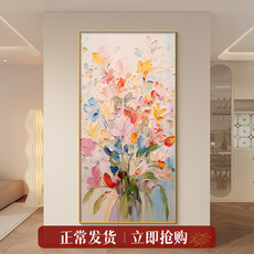 彩色肌理花卉奶油风玄关装饰画小众艺术入户门正对墙挂画竖版壁画